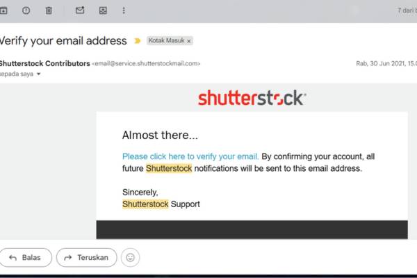 Shutterstock membutuhkan verifikasi identitas agar pembayaran dan hak cipta aman.
