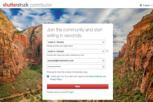 2. Masuk ke Halaman Pendaftaran Shutterstock Contributor
